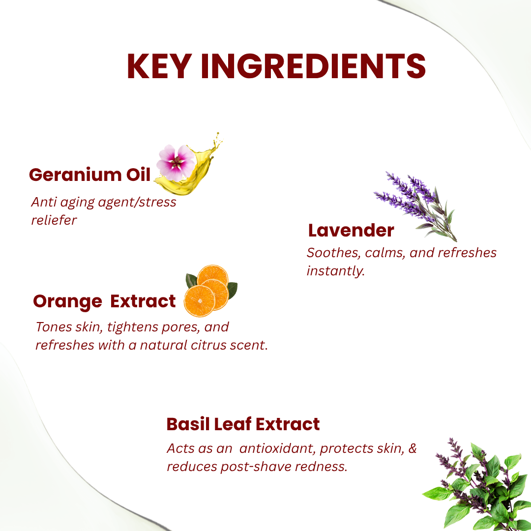 • Tulsi Extract – Acts as an antioxidant, protects skin, and reduces post-shave redness.