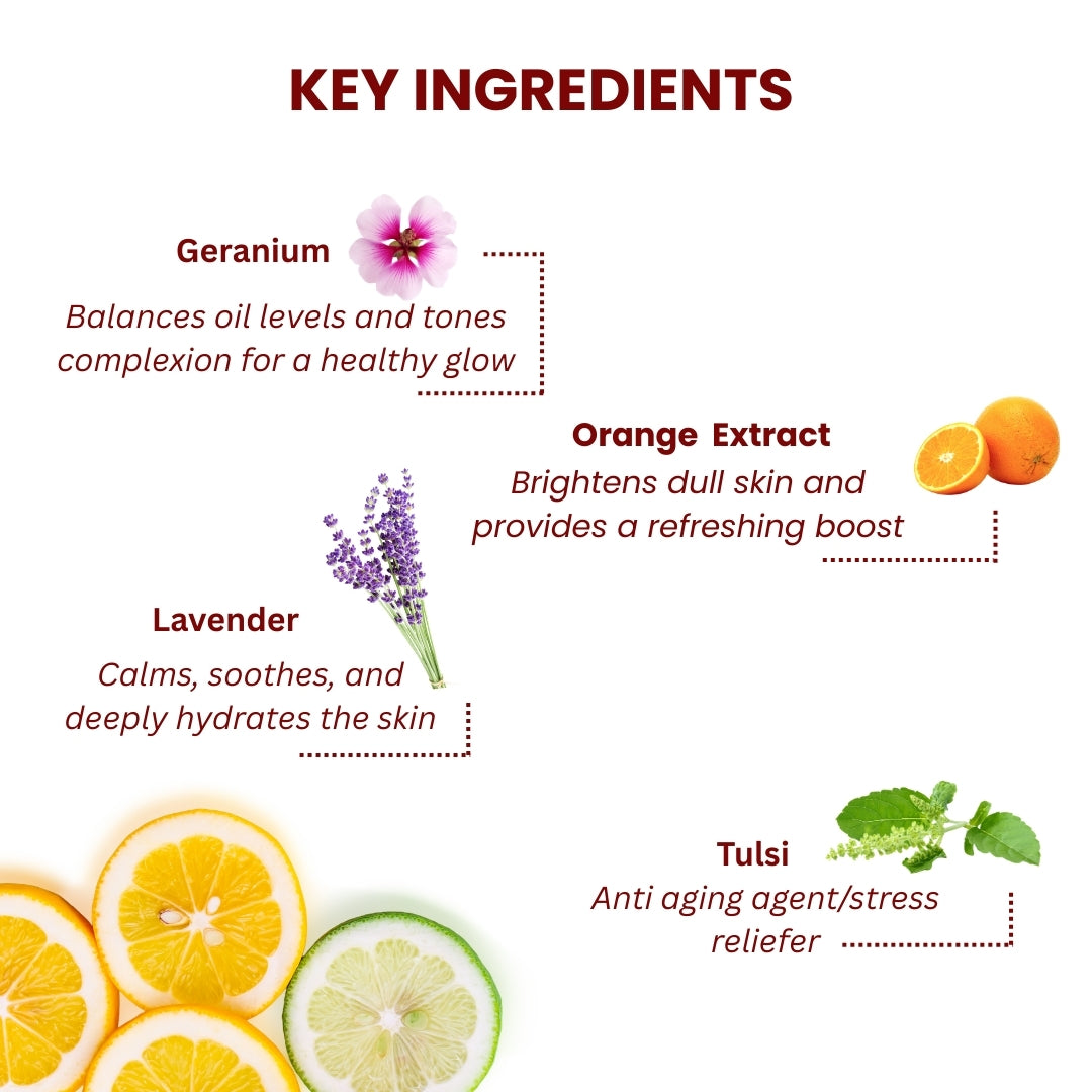 • Bitter Orange Flower – Tightens pores, controls oil, and brightens the skin.