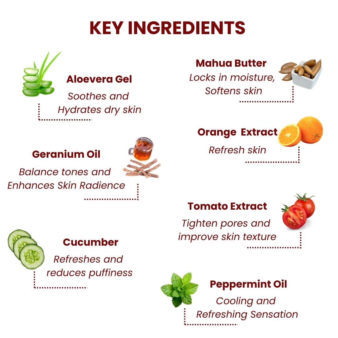• Cucumber – Refreshes and reduces puffiness