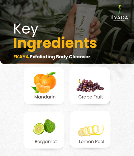Ekaya Exfoliating Body Cleanser is a luxurious organic formula designed to gently remove dead skin cells, revealing smoother, more radiant skin. Infused with a blend of mandarin extract, lemon peel extract, grapefruit extract, and orange oil, this body cleanser not only exfoliates but also brightens and rejuvenates the skin. Glycolic acid helps improve skin texture while niacinamide and salicylic acid target body acne and pigmentation.